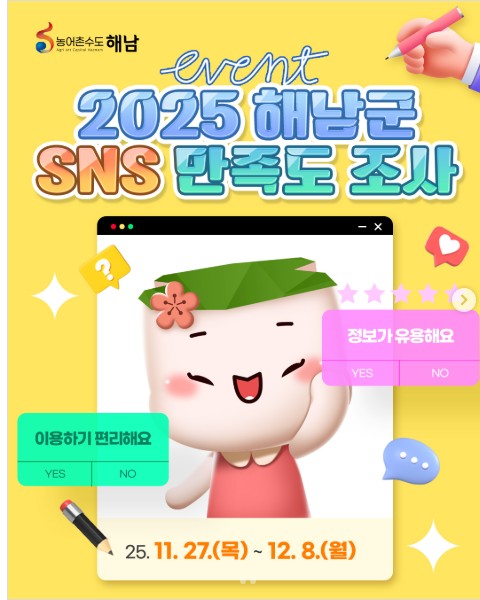 📢2025 해남군 SNS 만족도 조사 이벤트🎁