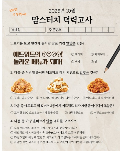 지금부터 2025년 맘스터치 덕력고사를 시작합니다.