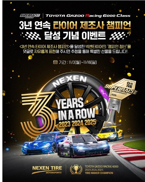 🎁 슈퍼레이스 챔피언십 <TOYOTA GAZOO Racing 6000> 클래스, ‘타이어 제조사 챔피언’ 3년 연속 달성 기념 이벤트! 🎁