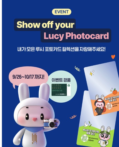 행사장을 방문하시면 지역 특색이 담긴 한정판 루시 포토카드를 나눠드리고 있는데요. 지금까지 소중히 모은 루시 포토카드 컬렉션을 SNS에 자랑해주세요!