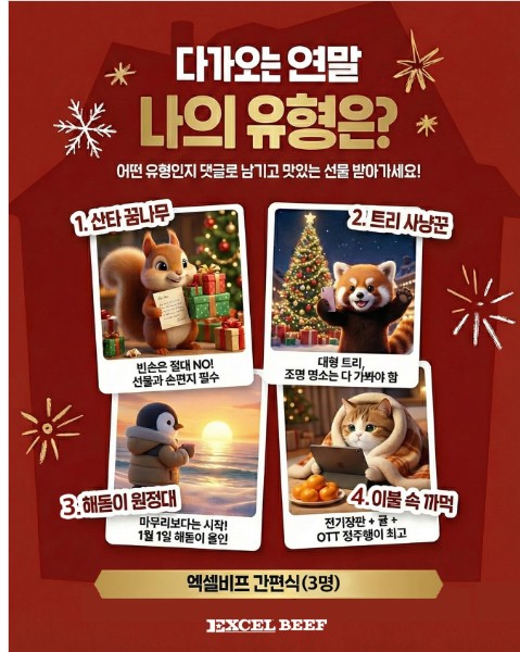 [엑셀비프] 나의 연말 유형을 댓글로 남겨주세요
