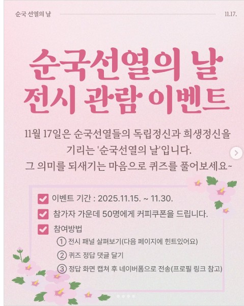 ✨순국선열의 날 전시 관람 이벤트 안내✨