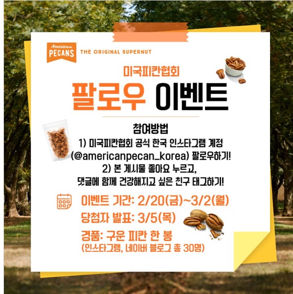 🎁 경품: 구운 피칸 한 봉 (블로그, 인스타그램 총 30명)