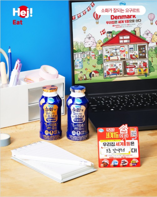 덴마크 소화가 잘되는 우유로 만든 요구르트를 마시면서