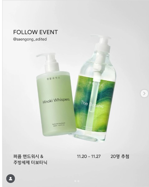 주방세제 더보타닉 1개 + 퍼퓸 핸드워시(히노끼) 1개 (20명) 총 당첨자 수 20명